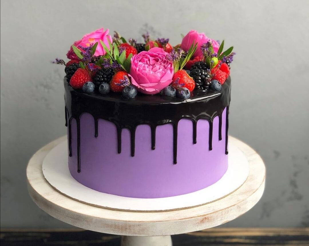 Цветочно-ягодный декор с яркой цветовой гаммой удачно смотрится на любом тортике!