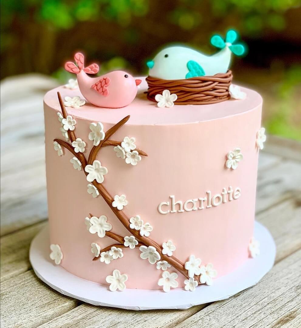 Неразлучные влюбленные птички украшают нежный весенний тортик - отличный подарок для мечтательных легких натур!