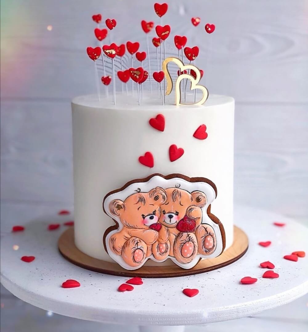 Малыши-медведи уютно устроятся на поздравительном тортике с праздником всех влюбленных